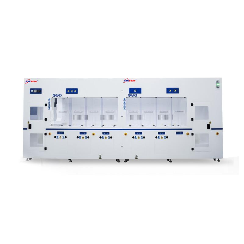 | 设备配置 | 4~16腔体(可定制) 支持2~4个CST/SMIF/FOUP上下料 支持化学液自动供液CCSS,LCSS 加热控制,浓度控制,流量控制,压力控制等; 酸、碱、有机液排风分离; 支持化学液回收; 高清摄像头,E-FLOW(可选); 全面支持SECS/GEM通讯协议 |
